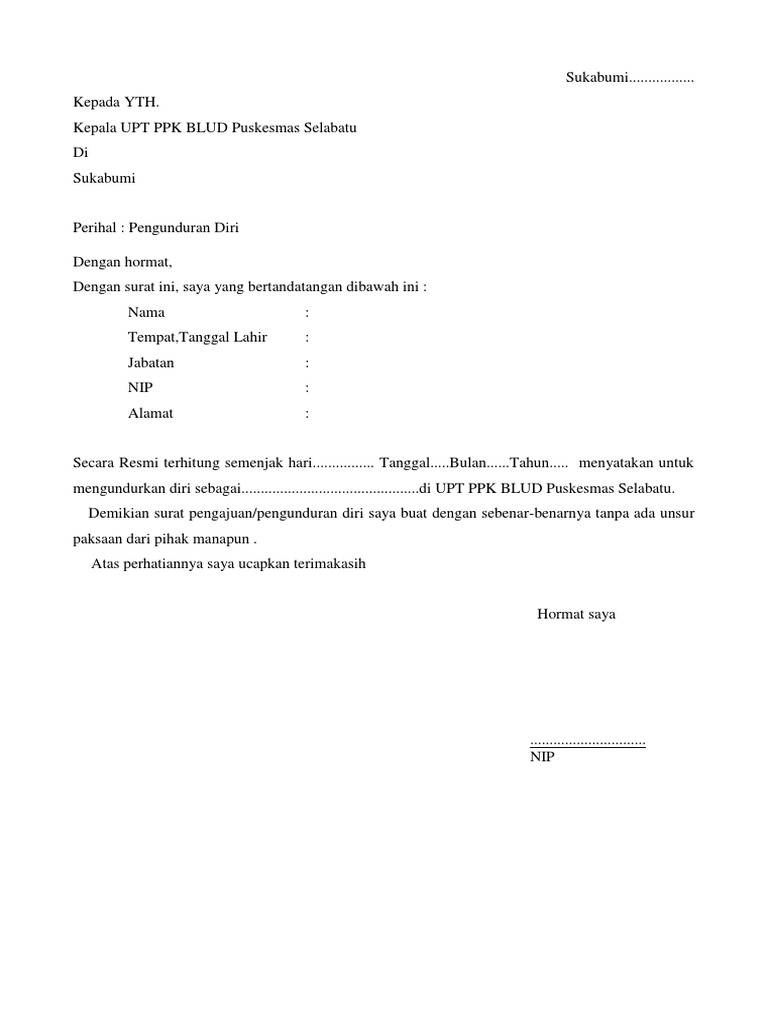 Surat Pengunduran Diri Di Puskesmas / Surat Pengunduran Diri / Kemudian warga memadamkan kobaran api dengan air dan alat seadanya.